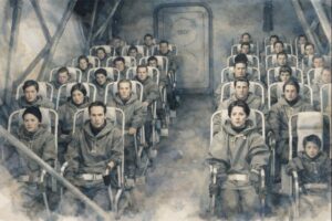 こうして、山間部の建設基地で人類最後のプロジェクトが始まった。しかし、建造されるロケット船に乗れるのは、わずか40名程度である。科学者、技術者、そして未来を担う若い男女が選ばれるが、それでも席は圧倒的に足りない。数十億の人類の中から、たった40名だけが新天地ザイラへの切符を手にする。誰が生き、誰が死ぬのか。この残酷な選択が、物語の中核を貫いている。