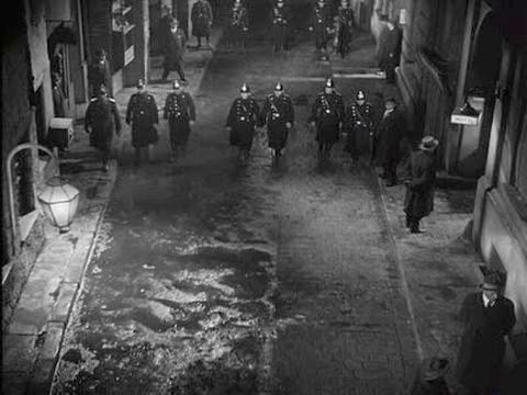 面白いことに、映画の中盤では、警察の会議と犯罪者たちの会合が同時に描かれる。ある人が話している言葉を、別の場所にいる人がそのまま続けて話すという演出は、当時としては画期的な方法だった。