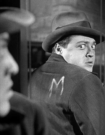 やがて、盲目の風船売りが再びあの口笛を耳にする。彼は仲間に知らせ、犯罪者たちのネットワークが動き出す。一人の男が追跡され、浮浪者の機転で背中に白いチョークで大きく「M」の文字が書かれる。この「M」はドイツ語で殺人者を意味する「Mörder」の頭文字である。