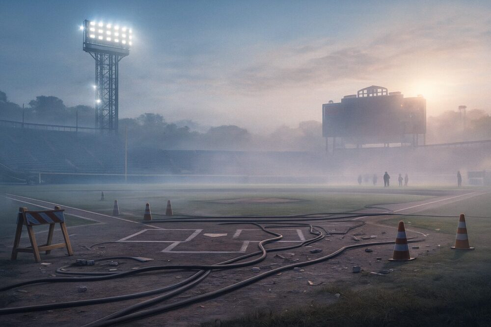 復旧した球場に再び光が戻り、