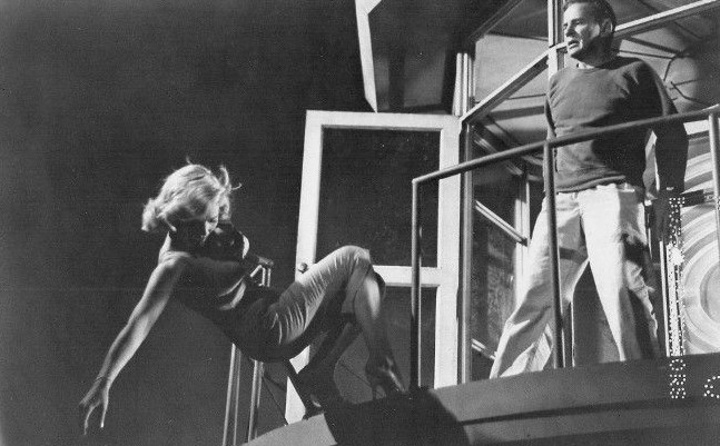 彼の輝かしい未来は、元恋人であるナイトクラブ歌手ヴァイ・メイソン(ジュリー・レディング)の突然の来訪によって脅かされる。執着心の強いヴァイは、島の灯台の頂上でトムに詰め寄り、二人の関係を暴露して婚約を破談にさせると脅迫する 。